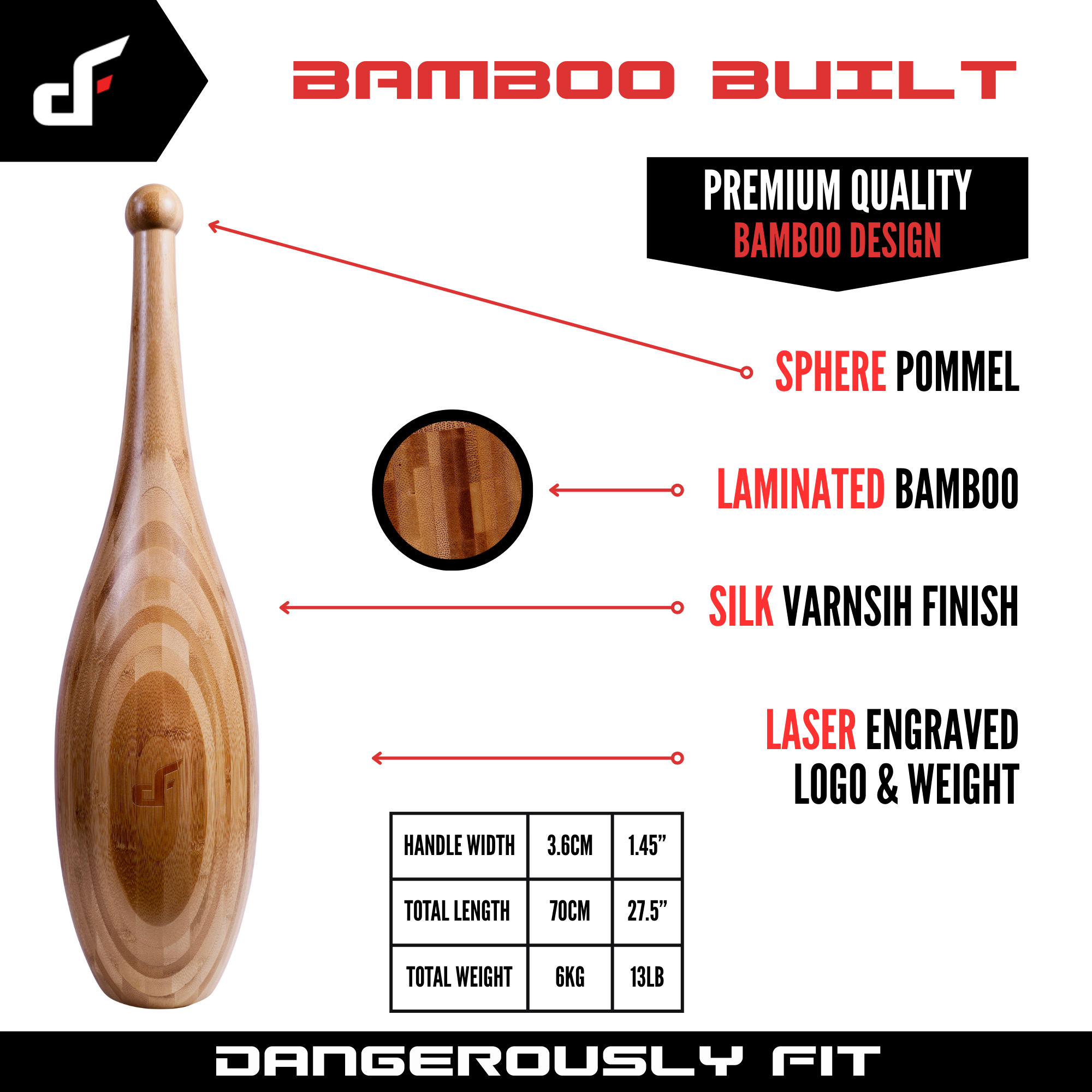 This beast of a bamboo club is ideal for performing single-arm and two-handed movements, suited for both traditional and modern club training.