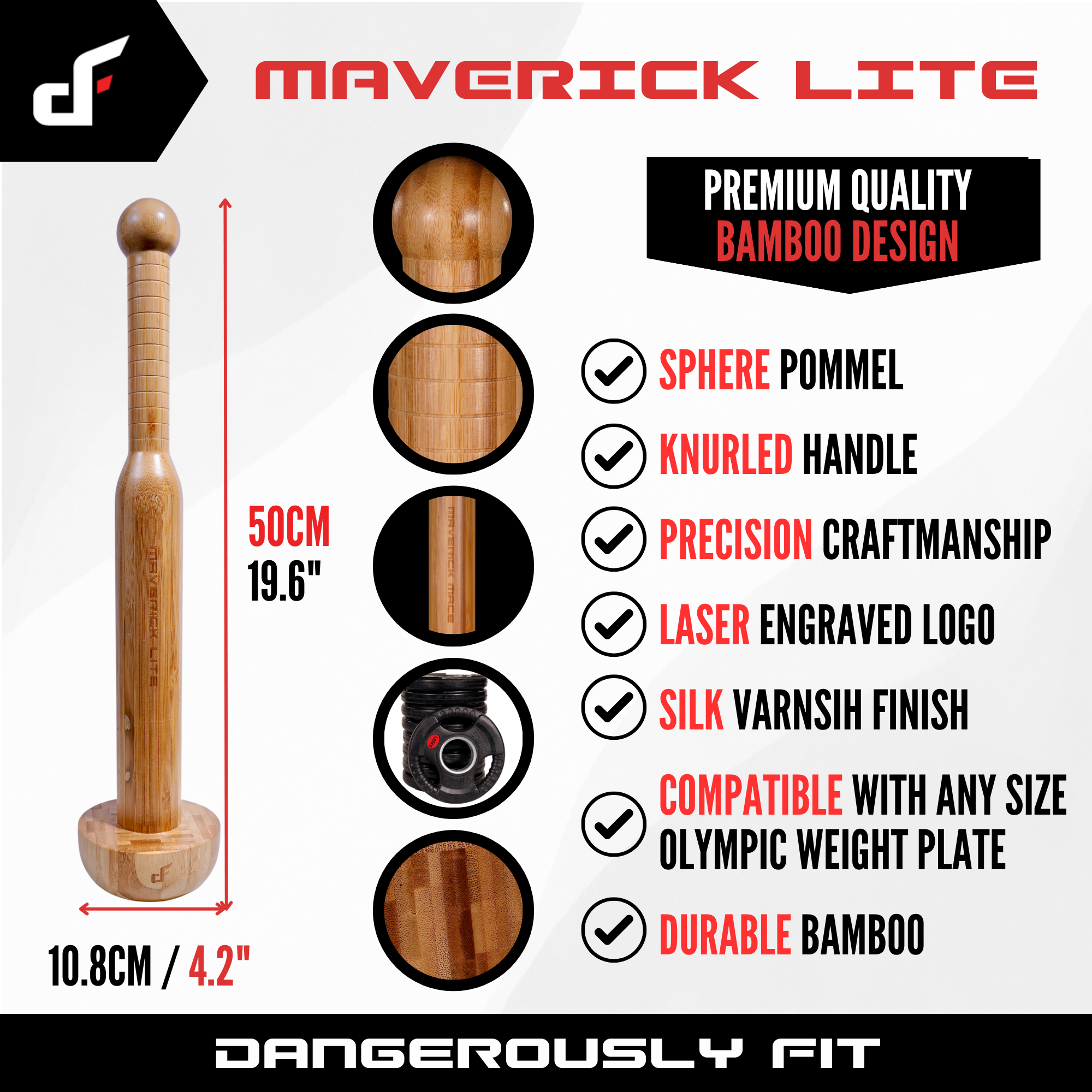| Benefits | + Versatility in One Club: From mobility and rehab to full-body strength training, the Maverick Lite adapts to your needs. Micro-load for light Indian club training or load up for heavy steel club exercises… no more switching between multiple clubs. |